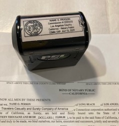 The notary stamp is a quality self-inking stamp which lasts for hundreds of uses. It can be refilled but